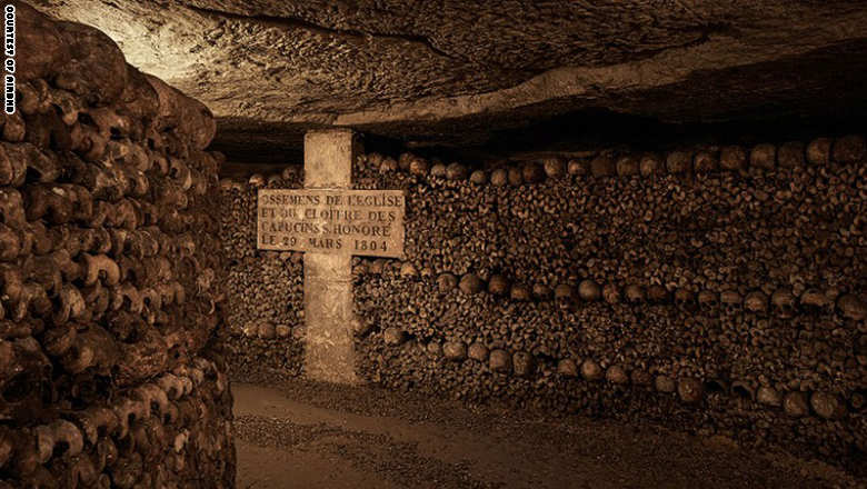 إنها غرفة معزولة عن العالم، حيث الهدوء الكامل، ولا يمكن الاتصال بشبكة انترنت ولا الهاتف المتحرك. لا يوجد أحد ليشاطركما هذه اللحظة.. سوى الهياكل العظمية المكدسة لمئات آلاف الباريسيين.